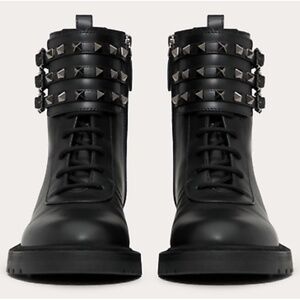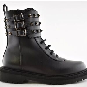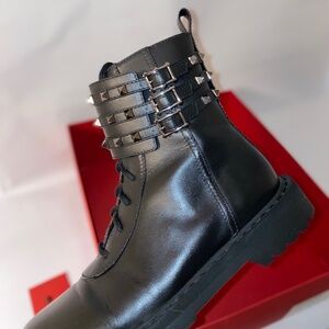 VALENTINO NWT Rockstud Buckle Accents Leather Combat Boots Size 39