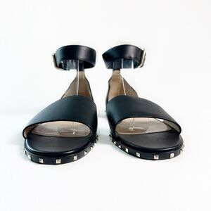 VALENTINO GARAVANI Nappa Black Leather Flat Rockstud Ankle City Sandal 39.5 US 9.5 Soul Stud