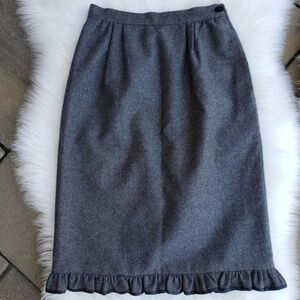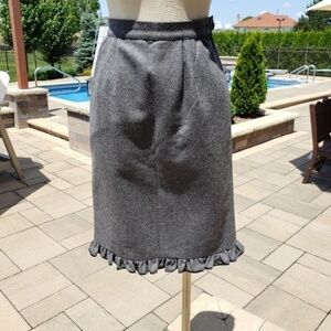 VALENTINO Night Wool Ruffle Hem Skirt Gray 6