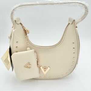 VALENTINO ORLANDI Cream Leather Purse w/Gold Hardware and Matching Wallet, NWT