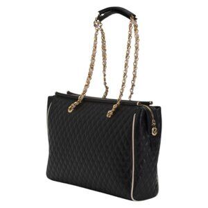VALENTINO ORLANDI Made In Italy Leather Quilted Tote With Chain Carry Handles