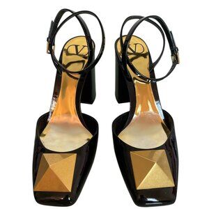 VALENTINO One Stud Block Heel Ankle Wrap Square Toe Heels Pumps \\ 37