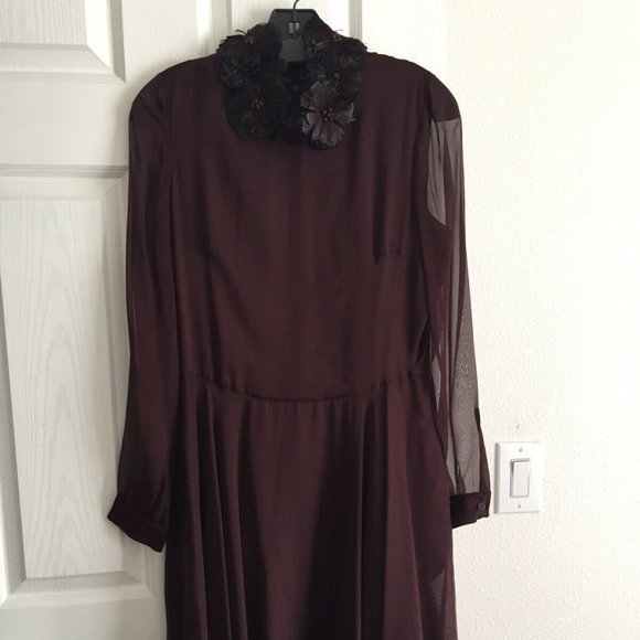 VALENTINO Purple Silk Dress Feather Floral Collar