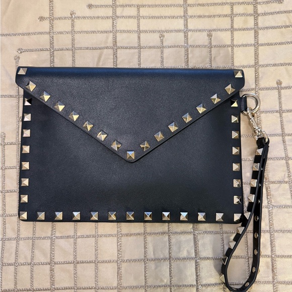 VALENTINO ROCKSTUD CALFSKIN POUCH WRISTLET