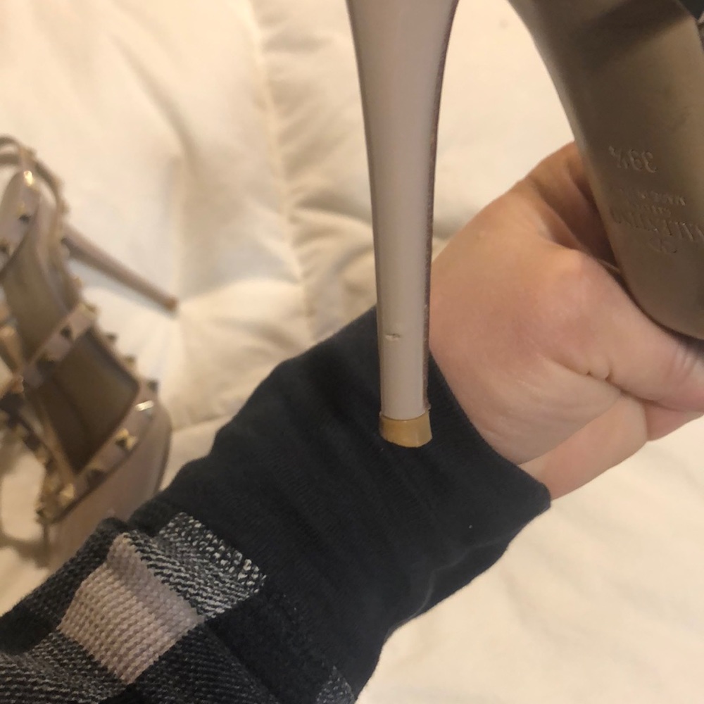Valentino Rockstud Gorgeous Heels .. Worn Few times. In Great Condition , SMALL knick on back heel , and a small smudge on front .Color is listed as Blush on Box.