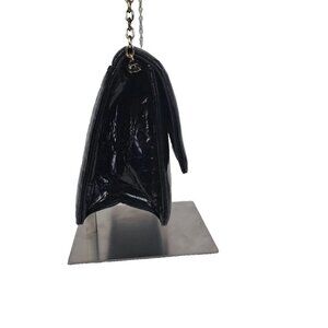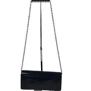 Valentino Rudy Patent Leather Designer Lockable Chain Handle Clutch Black Bag