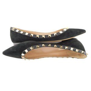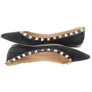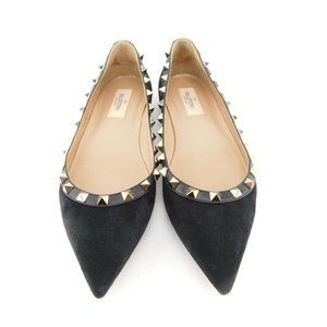 VALENTINO Rockstud Black Suede Ballerina Flats 37