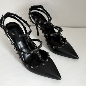 ⭕️ VALENTINO Sandals Heels Black Leather Rockstud Ankle Strap 39