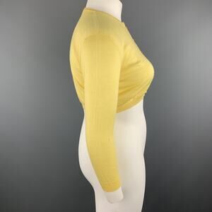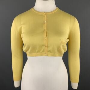 VALENTINO Size L Pastel Yellow Wool Blend Cropped Cardigan