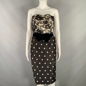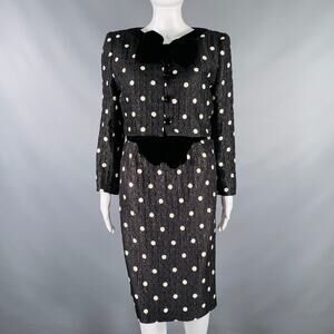 VALENTINO Size M Black White Polka Dot Strapless Dress Jacket Set