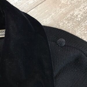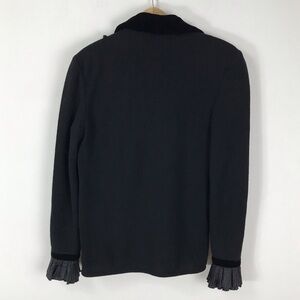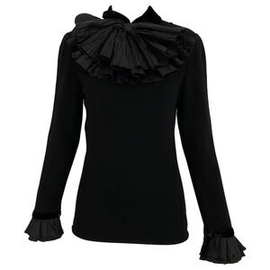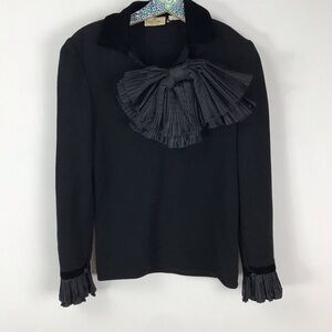 Valentino Boutique Designer Vintage 80’s Chic Avant Garde Black Cashmere Long Sleeve Sweater. Size medium. Length - 24.5” Underarm to Underarm - 18” Sleeve - 24.5”. Great overall condition. Some minor crinkles/runs on bow. Now is only secured by a safety pin. No fabric label, but definitely feels like cashmere. Velvet trim and collar. See pics for best representation.