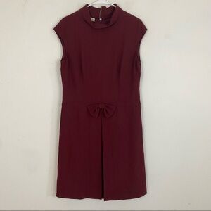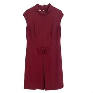 VALENTINO burgundy bow mock neck short sleeve mini dress