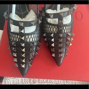 Valentino Garavani Rockstud pump in patent-leather and mesh.