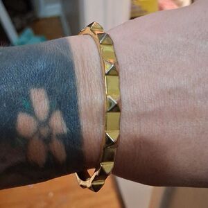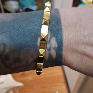 Elevate your style with this chic gold-tone studded bangle bracelet. Perfect for any occasion, this bracelet adds a touch of elegance to your outfit.