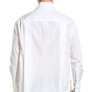 - Design Details: Rockstud Dress Shirt in White with Spread Collar, Rockstud Trim, Barrel Cuffs, Dual Chest Pockets, and Pleats at Back.
