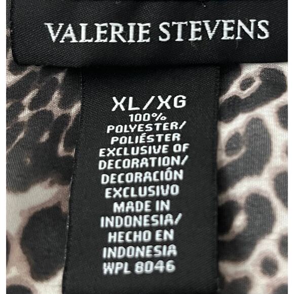 VALERIE STEVENS LONG TAB SLV BUTTON-UP BLOUSE, WOMENS, XL, BLK BRN GOLD ANIMAL