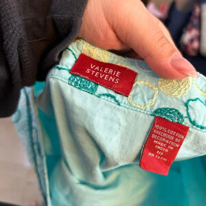 Pre owned excellent condition. Only flaw is a tiny spot on waist (pictured). Super cute aqua and green embroidered skirt. WOMENS size 10.