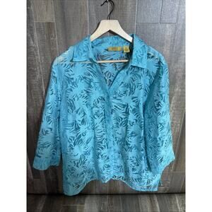 VALERIE STEVENS - WOMEN'S BLUE 3/4 SLEEVE BUTTON-UP BLOUSE SIZE XL