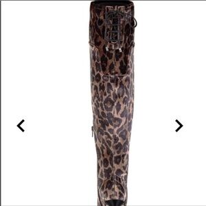 Channel your inner rock star with these ultra-sexy boots. With a daring leopard print, pointed toe and sexy lace-up detail, these boots are just what you need to take your looks to the next level.