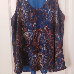 Valette Teal Blue and Tan Snake Skin Pattern Halter Tank with spaghetti straps/ flowy fit/100% polyester/ Like new condition