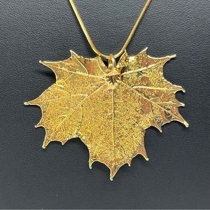 Real Maple Leaf (dried, preserved) coated in golden tone metal.