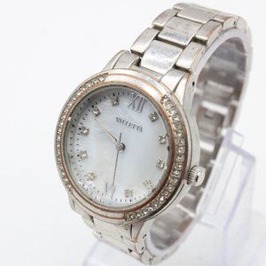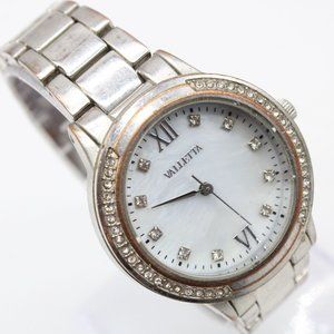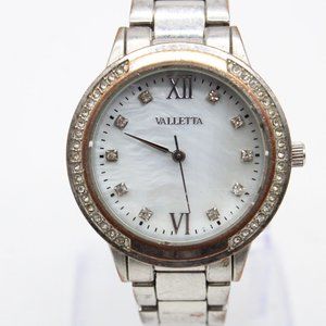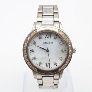 VALLETTA Watch Womens Silver Tone Stainless Steel Classic White Rhinestones Dial