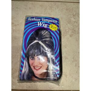 VAMPIRESS MONSTER BRIDE BLACK BEEHIVE WIG WITH WHITE STREAK COSTUME NEW