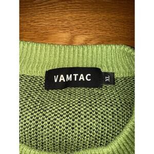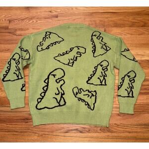 VAMTAC Dinosaur Knit Crew Sweater Unisex Size XL Green Cartoon Pattern