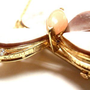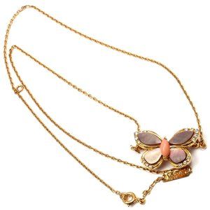 VAN CLEEF & ARPELS 18k Yellow Gold Diamond MOP Coral Butterfly Brooch Necklace