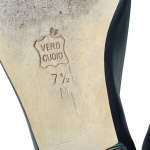 Excellent preowned condition, some wear on soles. VAN ELi Black Colorful Striped Leather Cap Toe Slip On Block Low Heel. Approx. measurements: Length 10", heel 0.75". Size 7.5.