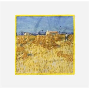 VAN Gogh oil painting series ‘Wheat Field Harvest’ on square silk scarf
