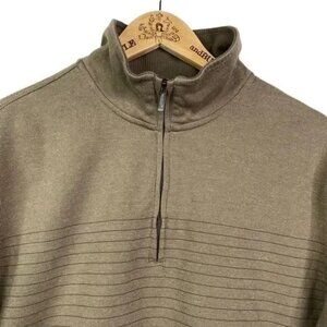 VAN HEUSEN MEN'S GREEN STRIPED 1/4 ZIP PULL-OVER SWEATSHIRT LARGE-EUC