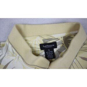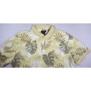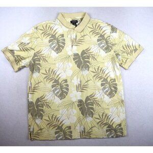 VAN HEUSEN - MEN'S YELLOW HAWAIIAN PALM PRINT SHORT SLEEVE POLO SHIRT - SIZE XL