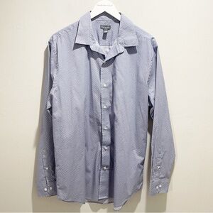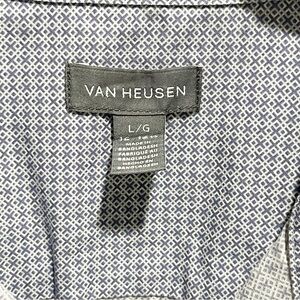 VAN HEUSEN Men’s Blue Geometric Print Long Sleeve Button Up Shirt Size Large