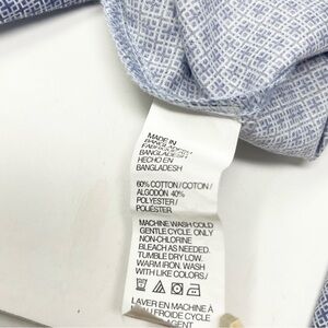 VAN HEUSEN Men’s Blue Geometric Print Long Sleeve Button Up Shirt Size Large. Excellent pre-owned condition. Minimal signs of wear. No stains, holes or snags. All measurements are approximate.