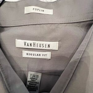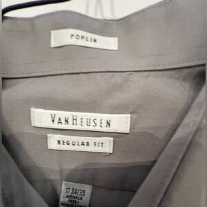 VAN HEUSEN POPLIN DRESS SHIRT REGULAR FIT SIZE 17. 34/35 SLEEVE - GRAY