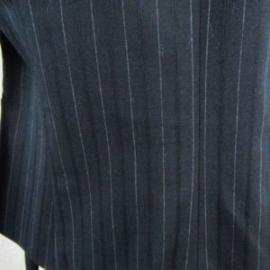 LADIES PROFESSIONAL PINSTRIPE PANTSUIT IN GRAY AND LIGHT GRAY PINSTRIPS. PANTS ARE FITTED AND ZIP FRONT AND JACKET IS THREE BUTTON FRONT AND ALSO FITTED. JACKET IS 36" BUST AND LINED PANT IS A 2 REGULAR 31" INSEAM. JACKET FALLS AT THE HIP AND IS VERY SLIMMING. STREATCH FABRIC OFFERS ADDITIONAL COMFORT. THIS IS THE PERFECT CONSERTIVE SUIT FOR THE WORKPLACE. FLAT FRONT PANT NO FLAWS NO ORDORS NO STAINS