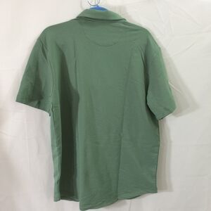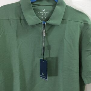 Brand new with tags VANCAMEL men's short sleeve polo shirt in a soft sage green. This stylish and versatile quarter-zip polo features a modern minimalist design with a sleek zip-up front and flat collar. Made from a flexible cotton blend fabric (70% cotton, 24% polyester, 6% spandex), it's lightweight, breathable, and offers a bit of stretch for comfort and ease of movement.