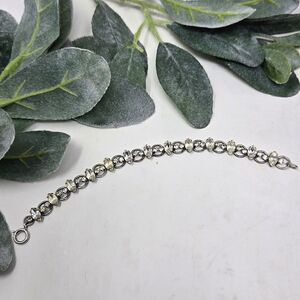 Vintage sterling silver prong set rhinestone bracelet. The bracelet is stunning, the rhinestone and settings could use to be cleaned but selling it as is. All rhinestones are present. The clasp is stamped sterling on one side and Van Dell Sterling on the other. It is closed with a spring clasp. It weighs 12.71 grams. Thank you so much for looking. Please see all photos as this is the exact piece you will receive. I am always open to reasonable offers. Have a fantastic day!