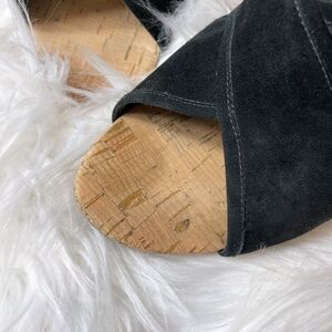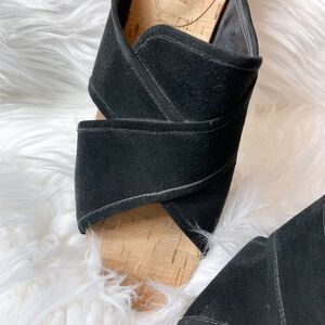 VANELI Black Wedge Espadrille Leather Top Sandals Size 9M. These are a comfortable, open toe sandal with about a 2” heel. The brand no longer shows on heel side but these are in excellent pre owned condition with no flaws.