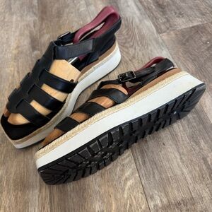Step out in style with these chic black platform sandals. Perfect for any occasion, these sandals offer both comfort and elegance.