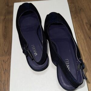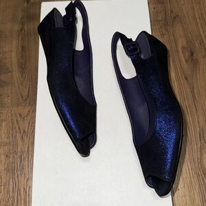Step out in style with these elegant black peep-toe slingback shoes. Perfect for any occasion, they offer both comfort and sophistication.