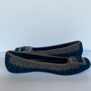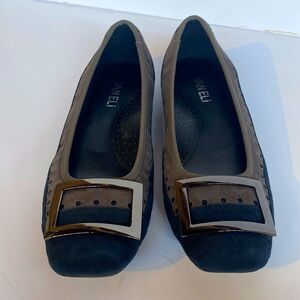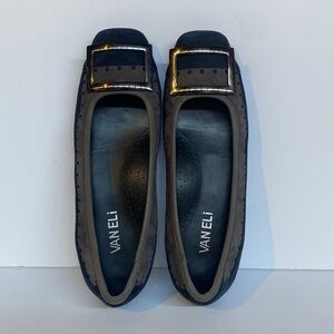 VANELI Nicci Leather Suede Ballet Flat w Buckle Detail Navy Gray Size 7M