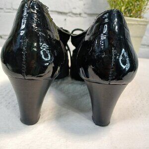VANELI SHOES, BLACK REPTILE PATTERN LEATHER AND STRETCH FABRIC LACE UP SIZE 6M