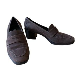 VANELI SUEDE PENNY LOAFER BROWN BUSINESS BLOCK HEEL MINIMALIST 7