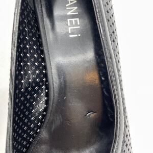 VANELI Womens Heel Black Leather Size 9 Peep Toe Slip On Cork Mini Wedge Pump