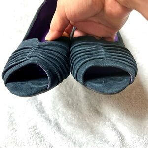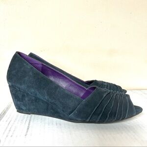 Suede leather peep toe wedge pump
