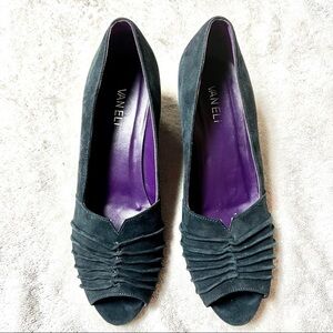 VANELI Women's Pewter Navy peep toe wedge Shimmer size 9N
