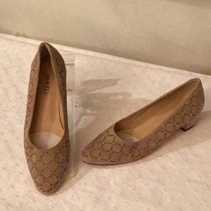 VANELI light brown suede with interlaced golden tone chain and low heels # 7 N