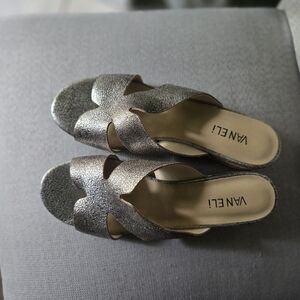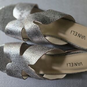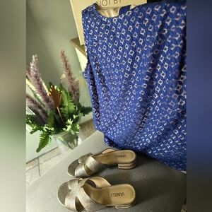 Step out in style with these chic metallic slide sandals. Perfect for any occasion, these sandals offer both comfort and elegance.
